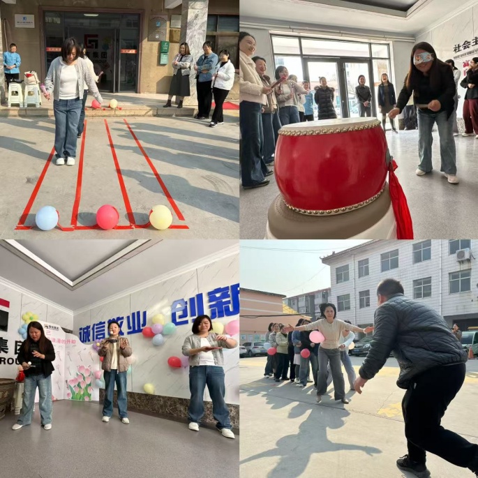集團(tuán)大廳精心設(shè)計的鮮花簽到板格外引人注目,大家紛紛在簽到板前合影留念,記錄下這一美好的瞬間。接下來,熱鬧的盲人擊鼓、顛乒乓球、紅黃藍(lán)等游戲環(huán)節(jié)將活動推入高潮。比賽中加油聲、歡笑聲此起彼伏,女員工們在游戲中盡情享受著團(tuán)隊合作帶來的樂趣,充分展現(xiàn)了大家積極向上、團(tuán)結(jié)協(xié)作的精神風(fēng)貌。